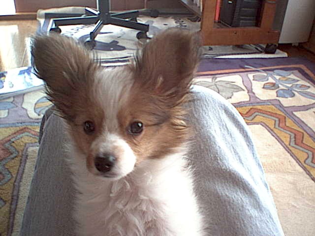 名前を付けた、フランス貴族に愛されてきたパピオンなので、フランス語で「友達」と言う意味の「コパン」に決定、実はTV番組「笑っていいとも」でゲストのスチャダラパーのメンバーが言っていたのをパクリ ヾ^^;;